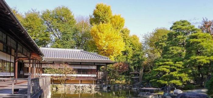 「涉成園」是位於東本願寺旁的一座古典迴游式庭園,由江戶時期的文人石川丈山所設計,名稱來自陶淵明《歸去來辭》中的詩句「園日涉以成趣」,過去曾作為住持的居所或宴請外賓的地點。園內座落了茶屋、書院和涼亭,如臨池邸、園林堂、漱枕居等優美建築,同時也以石垣、燈籠、手水缽等造景,為園內創造出錯落有致、四季如畫的風貌,值得細細遊覽。